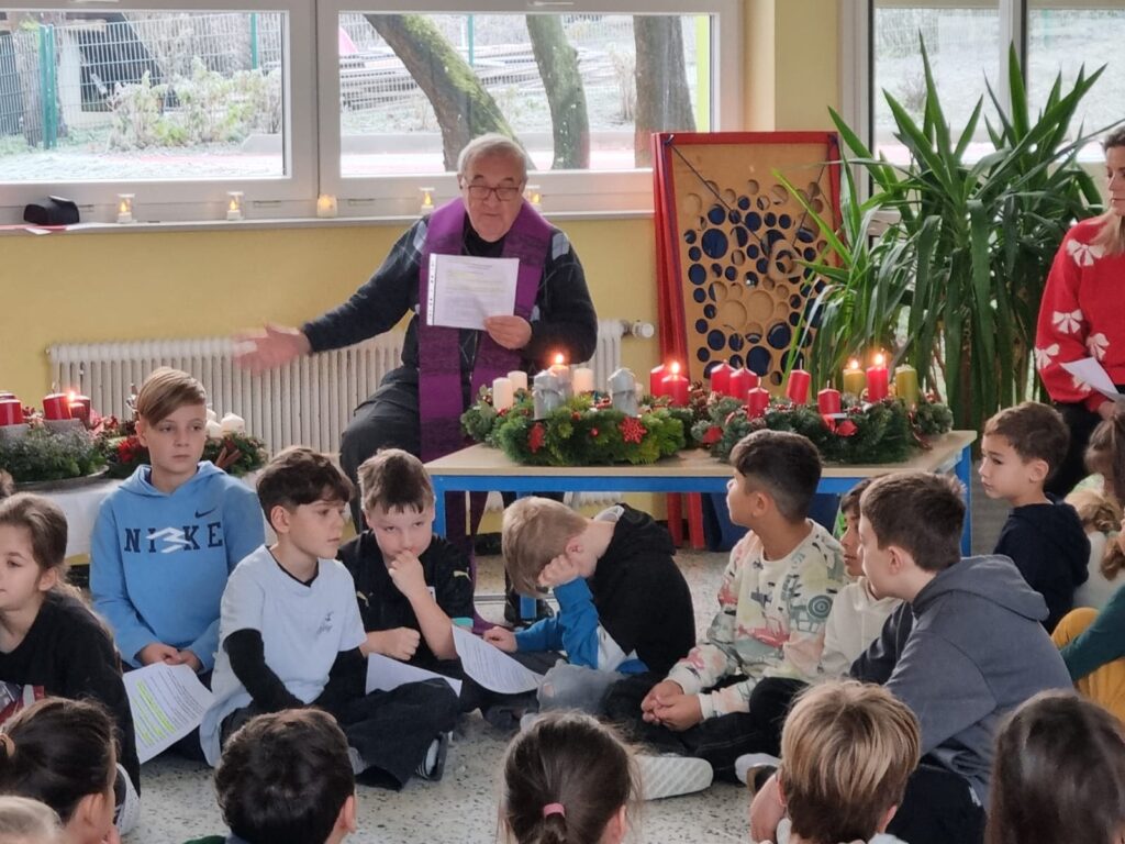 Am Freitag gestaltete unsere Frau Religionslehrerin mit Pater Michael eine kleine Adventfeier zur Segnung unserer Adventkränze! Die 4. Klassen hatten dazu ein Lied und einen Englisch-Rap vorbereitet!